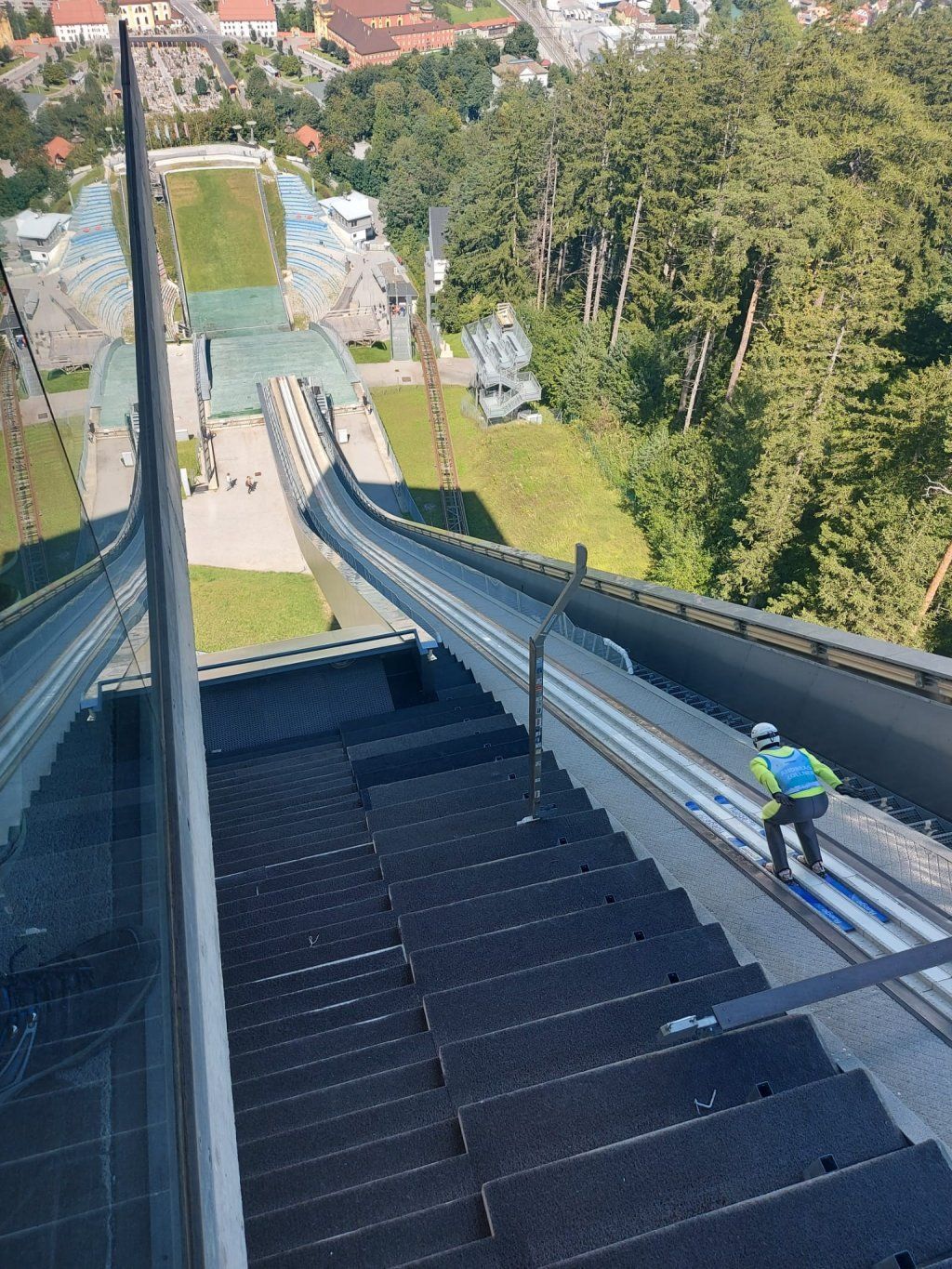 zur Besichtigung der Schanze. Die Turmhöhe beträgt 50m, die Anlaufspur 98m und der Schanzenrekord