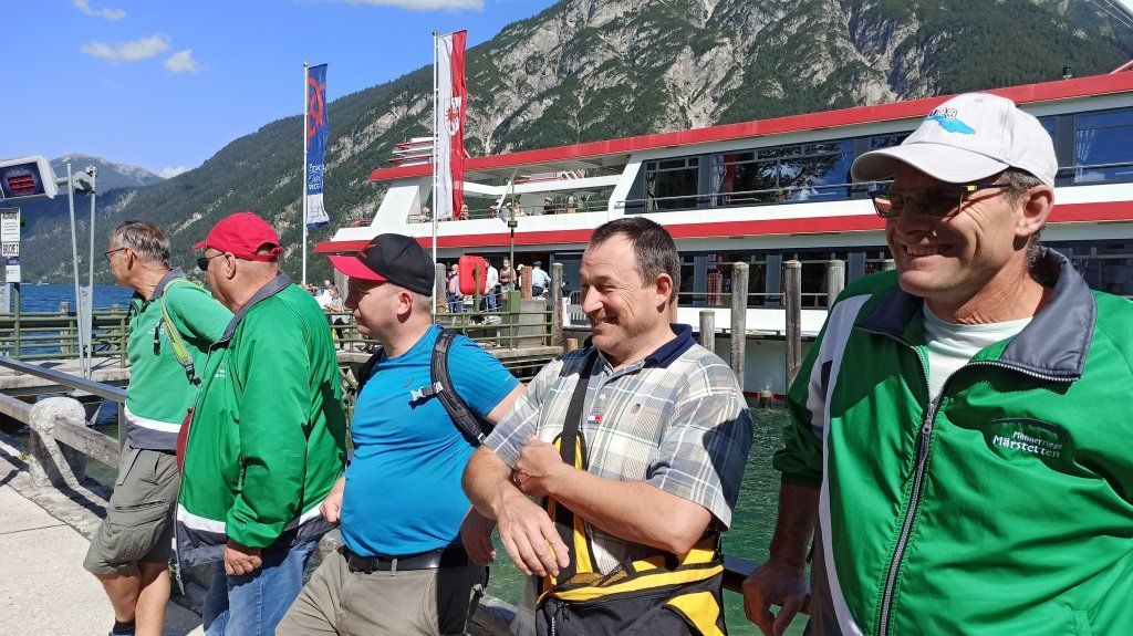 Achensee. Eine Gruppe wanderte über Stock und Stein bis ans Ende des wunderschönen Sees. Die andere Gruppe genoss eine herrliche Schifffahrt mit Zwischenhalt in Scholastika. Gemeinsam traten wir die Rückfahrt mit dem Schiff nach Pertisau an.