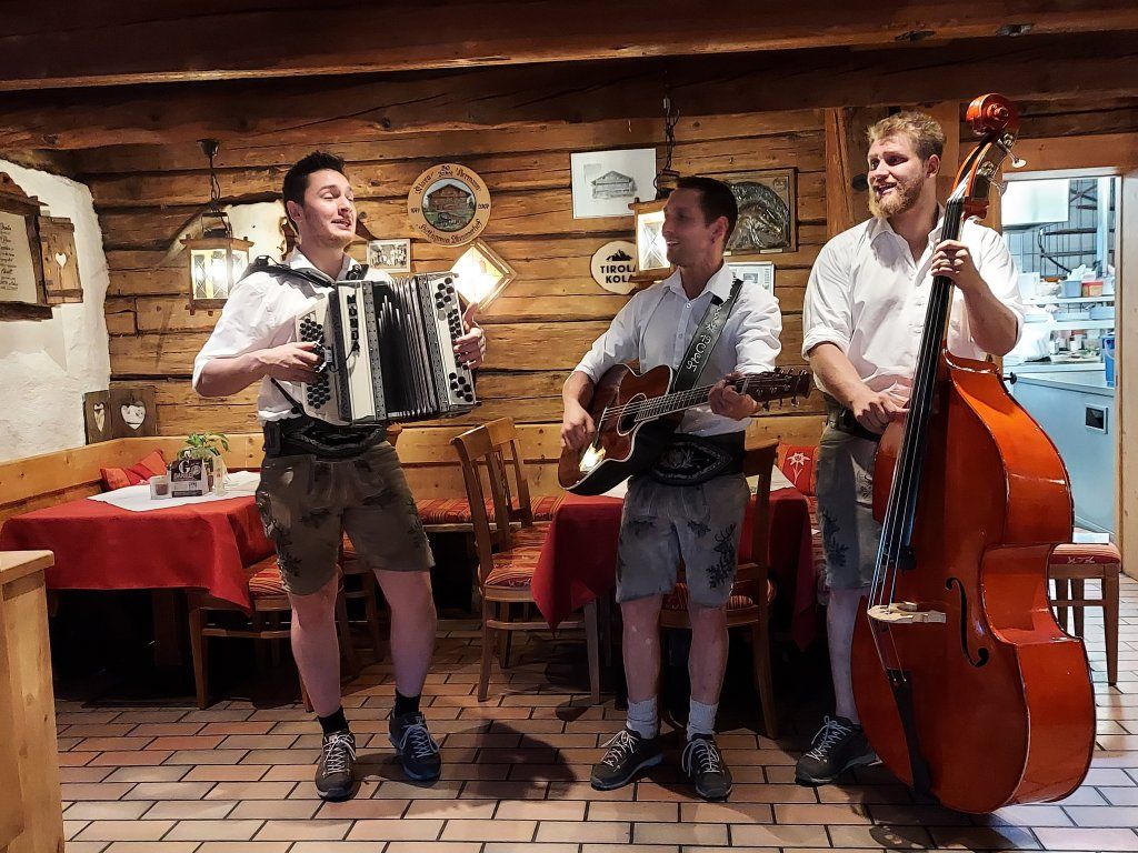 Ein feines Eis rundete den tollen Ausflug ab. Nach der Rückfahrt zum Hotel war der Hüttenabend im Goglhof auf dem Fügenberg angesagt. Wir wurden mit Tiroler Kasspätzle, gegrillter Schweinhaxe mit Beilagen und einem Schnapsel zur Verdauung verwöhnt. Zum Hüttenabend gehörte selbstverständlich die passende Unterhaltung mit Tiroler Folklore.
