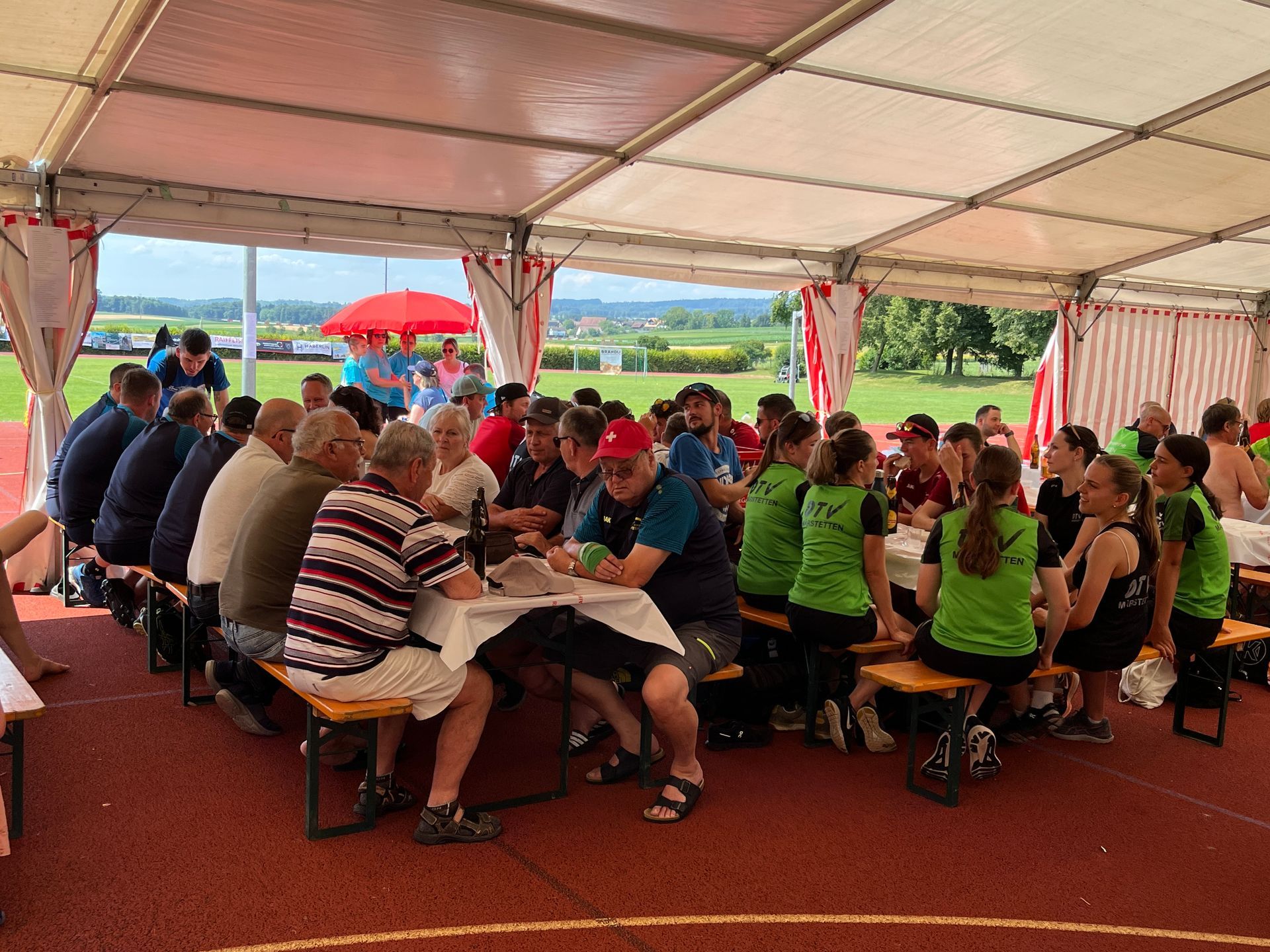 Das Festzelt und die Festwirtschaft wurde bereits am Vorabend aufgestellt. Um Synergien zu sparen wurde das Treffen der vier Märstetter Turnvereine auf den aufgebauten Festplatz in der Weitsicht verlegt.